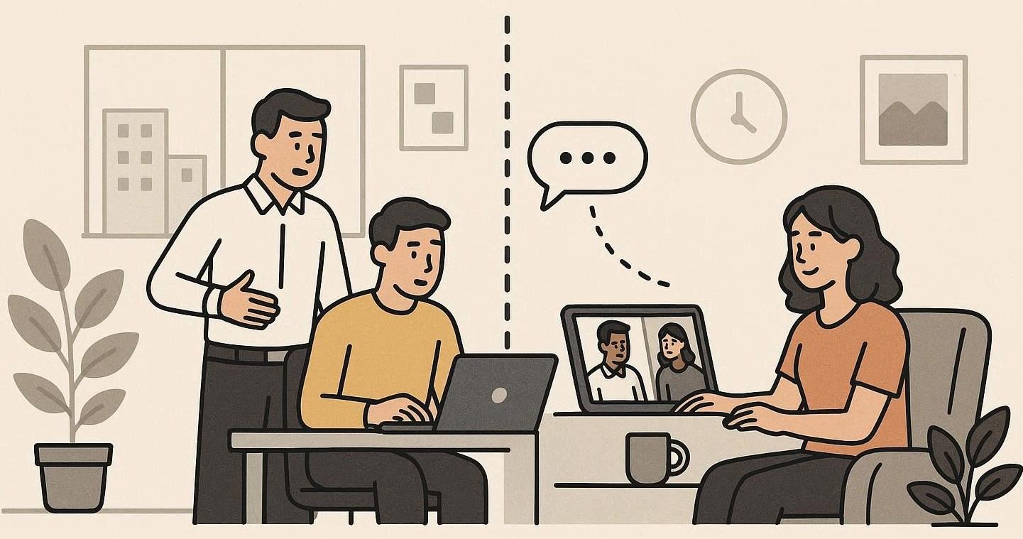 Hybridimalli voi tuoda joustavuutta, mutta samalla riskinä on että rajat häviävät — että työntekijät kokevat odotuksia olla jatkuvasti tavoitettavissa tai työn menevän vapaa-ajan päälle. Ja toisin päin – osa kokee etätyön antavan mahdollisuuden ottaa rennommin ja käyttää työaikaa henkilökohtaisten asioiden hoitoon tai Netflixin katseluun. Johtajilta odotetaan taitoa asettaa selkeät rajat ja huolehtia, että työn määrä, kuormitus ja palautuminen ovat tasapainossa sekä yhtä aikaa työn tekemisen tehokkuus ja laatu vähintäänkin säilyvät.
